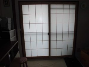 和紙調ガラスも今までの和紙の建具と違って明るく綺麗です。(写真ではなんとなく暗いですが…。)一式単板5㎜でのご注文でしたが非常に静かになって明るくなって嬉しいわぁ!すぐ子供に電話するわ~と大変喜んでいただけました!
