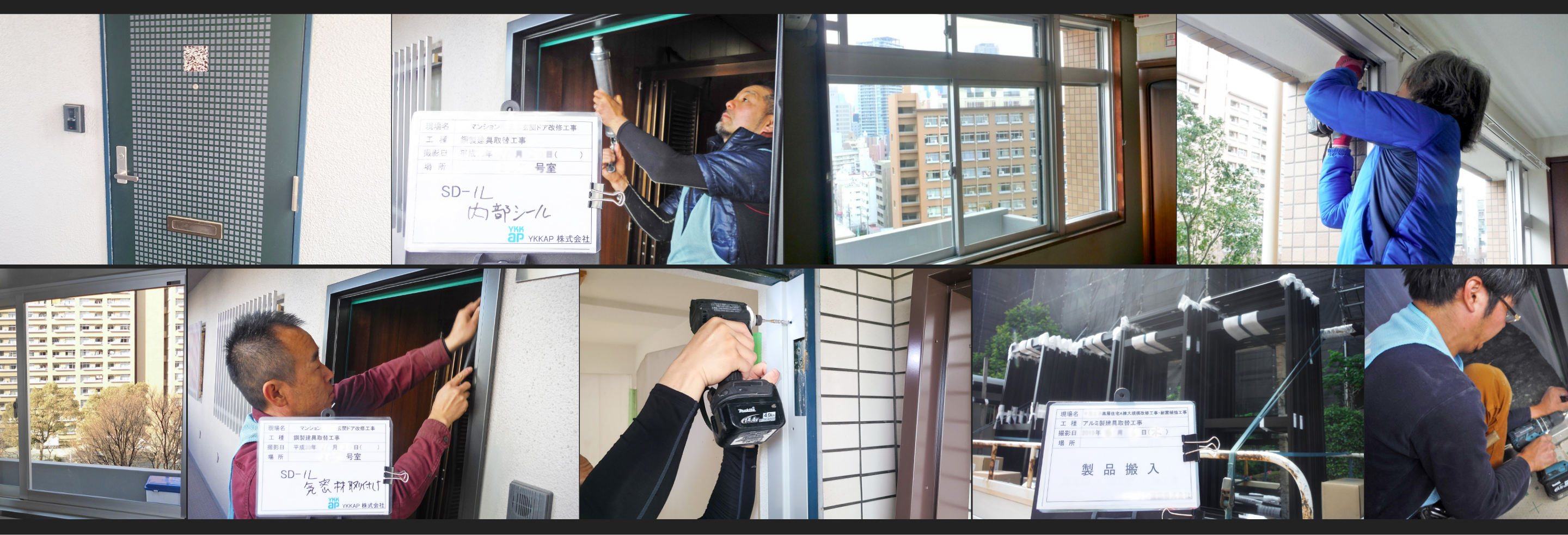 大規模改修工事の中のサッシ工事やドア工事や手摺工事、面格子工事を中心に依頼を受け連携している有力塗装会社とタッグを組んで