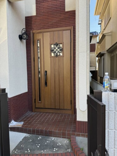 ごく一般的なアルミのドアから断熱玄関ドアに交換です。