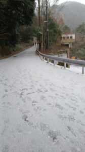 船坂交差点を左折して更に有馬温泉方面へ向かうが後ろから付いてくるものは誰も居ないのが更に不安となってくる。道はもうすでに轍もない新雪状態、自分以外の車は全くいないので急ブレーキテストを試みると、チョット滑るがまぁ止まる。ちょっとだけ安心感に包まれいつものロープウェイ駐車場へ到着。