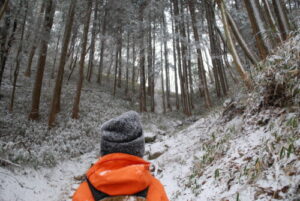 あとは旧極楽茶屋を目指し一気に登ります。気温-4°なんで降った雪が解けずに帽子やリュックに乗ってます。払いのけるのが妙に気持ちいいのは私だけか?裏六甲は白銀の世界