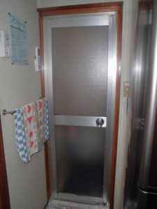 息子さんからご両親の家の浴室ドアを取り替えたいというお問い合わせです。高齢となり別の場所に住んでいるので、これ以外にも心配事は多々あるのですが、とりあえず開閉が楽で使い勝手を良くしたいという事でした。