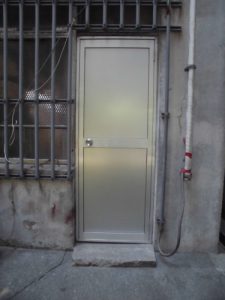 どうです?綺麗になりました!普段はアルポリックパネルを使うのですが今回は防犯面も高めたいというご要望でしたのでアルミの板を使用しております。ドアクローザー付きなので自閉はもちろん、開き時ストップします。文章で説明しにくいので割愛しますが、この工事が見た目以上に非常に難工事で大変でした。とにかくキレイになって普通に開け閉めできるのが嬉しいと喜んでいただけました。