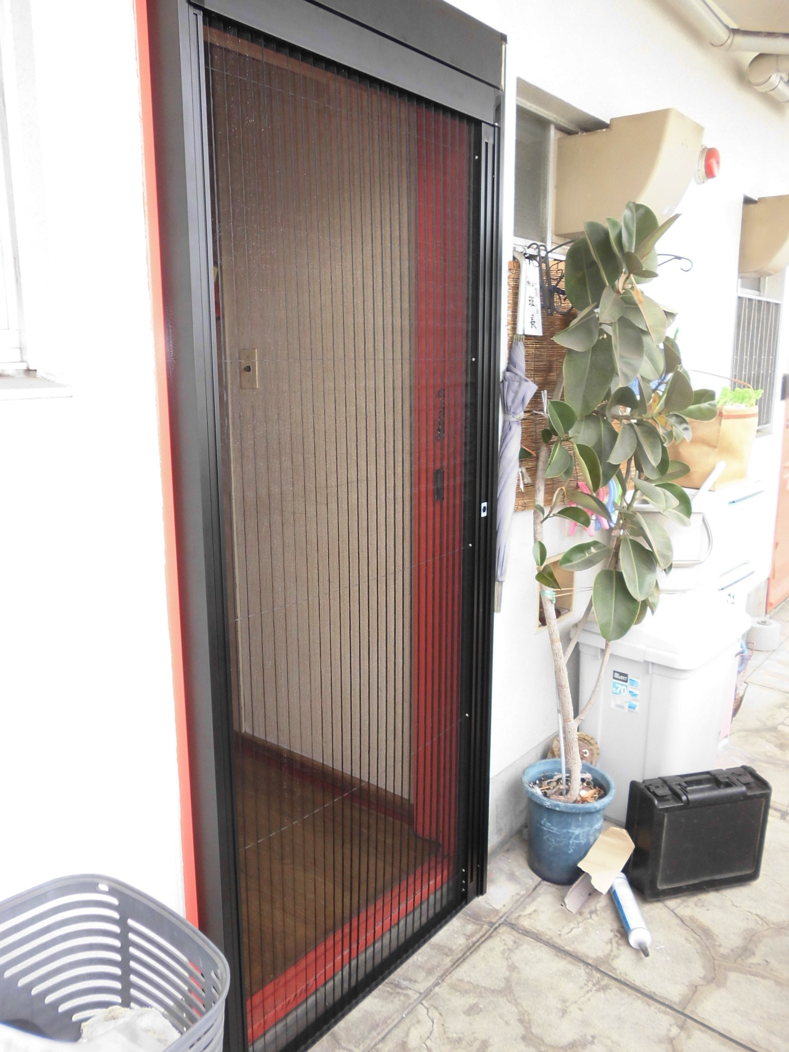 リフォの玄関網戸リフォーム 大阪市浪速区 しまえるんです取り付け工事
