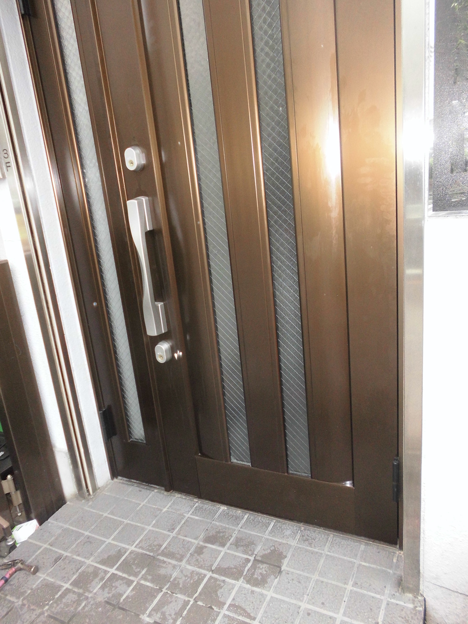 今ではなかなか見ることが少なくなった内開きのスチール玄関ドアでした。