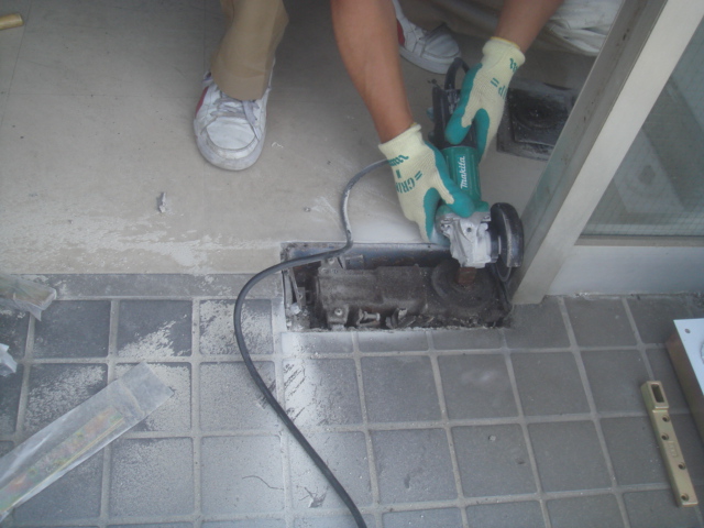 まずコンクリート床に埋まっている腐ったフロアヒンジを掘り起こし