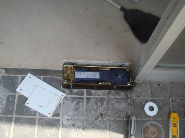 新しいフロアヒンジを設置、とはいえ代替え品でサイズが全く違う・・・
