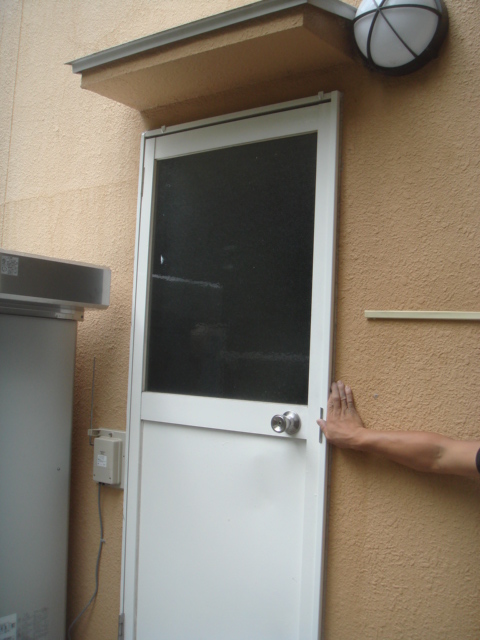 普通の勝手口を通風勝手口にしたいのと、更に吊元を反対にしたいとのこと
