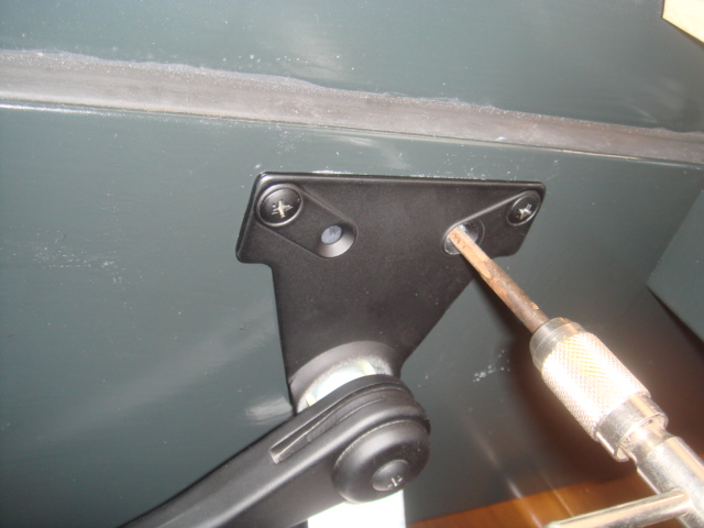 スチール枠に穴をあけて、そのあとにタップ切りしてからビス固定