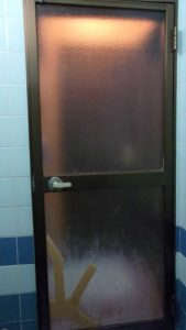 ガラスが割れている、レバーハンドルが錆びて動かない、修理したいというご相談でした。割れ替えやレバーハンドル錠を取り替えるのもアリですがホントにそれでいいですか?