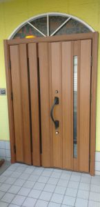 アーチ部分は残して、親子扉の玄関を交換しました。